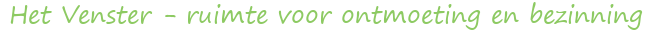 In HET VENSTER - ruimte voor ontmoeting, inspiratie en bezinning - is iedereen welkom. Wij vormen een open gemeenschap van mensen die met elkaar leren en beleven, puttend uit een rijkdom van bronnen, religies en tradities. Hier meer info.