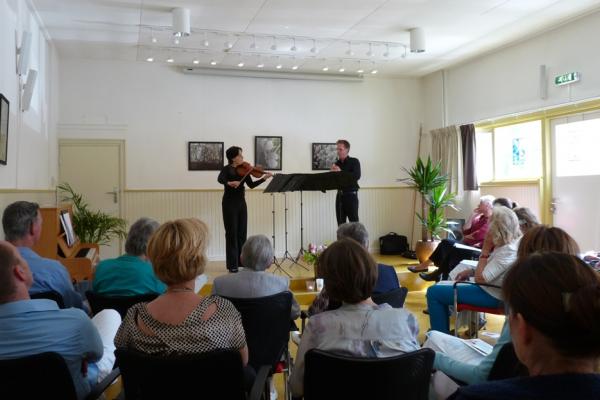 Mark Snitselaar (klarinet) en Janneke Zegveld (viool) speelden werken van componisten die door de nazi’s als ‘entartet’ (gedegenereerd) werden bestempeld. Zij schetsten de achtergronden van het muzikale leven in en rond de oorlogsjaren. Op het programma stonden werken die, vanwege de joodse komaf van de componist, werden verboden.