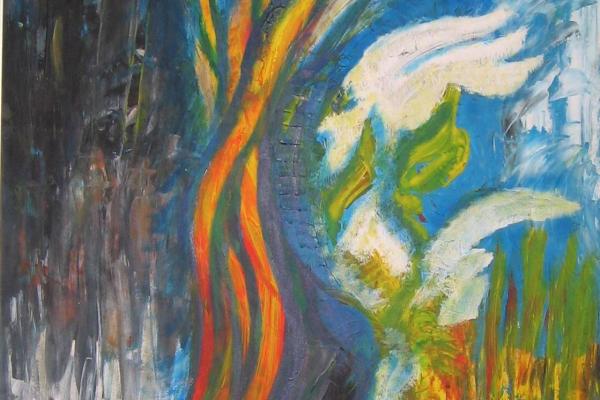 - bovenstaand schilderij 'Vuurgeest' (detail) -